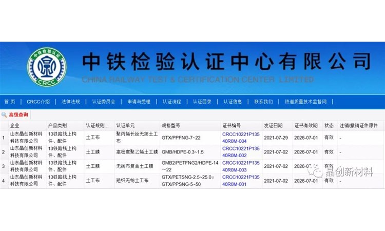 喜報!晶創(chuàng)新材料通過CRCC認證!
