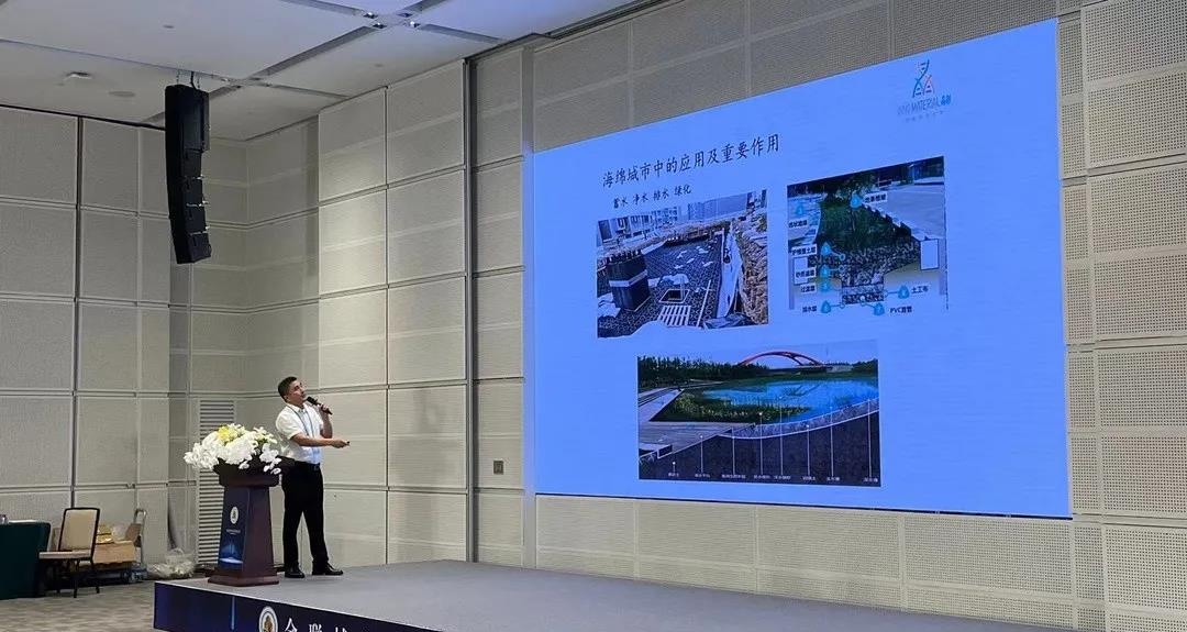 晶創(chuàng)新材料董事長(zhǎng)馮忠超誠(chéng)邀參加此次會(huì)議,就新型土工布在海綿城市工程中的應(yīng)用及重要作用做出詳細(xì)講解,馮總表示:在新興的海綿城市建設(shè)中,聚丙烯長(zhǎng)絲土工布發(fā)揮持久耐腐蝕、高效反濾、加筋等功能,能適應(yīng)凹凸不平的基層,能抵抗施工外力破壞,蠕變小,長(zhǎng)期荷載下仍能保持原有的功能 ;針對(duì)“蓄、凈”措施,聚丙烯長(zhǎng)絲土工布能夠發(fā)揮蓄水、凈水的功能,保證上層結(jié)構(gòu)的泥沙有效留存,凈化水質(zhì),能有效存儲(chǔ)、過(guò)濾雨水。有良好的水力條件和反濾條件,保證不易淤堵,從而達(dá)到雨水綜合利用的目標(biāo)。聚丙烯長(zhǎng)絲土工布在海綿城市中使用年限超過(guò)工程設(shè)計(jì)壽命,提高工程質(zhì)量,耐腐蝕、抗老化、不易降解,對(duì)環(huán)境起到保護(hù)作用,更經(jīng)濟(jì)、有效、持久解決了工程建設(shè)中的基本問(wèn)題,符合國(guó)家高質(zhì)量發(fā)展、綠色發(fā)展戰(zhàn)略!促進(jìn)海綿城市可持續(xù)發(fā)展。