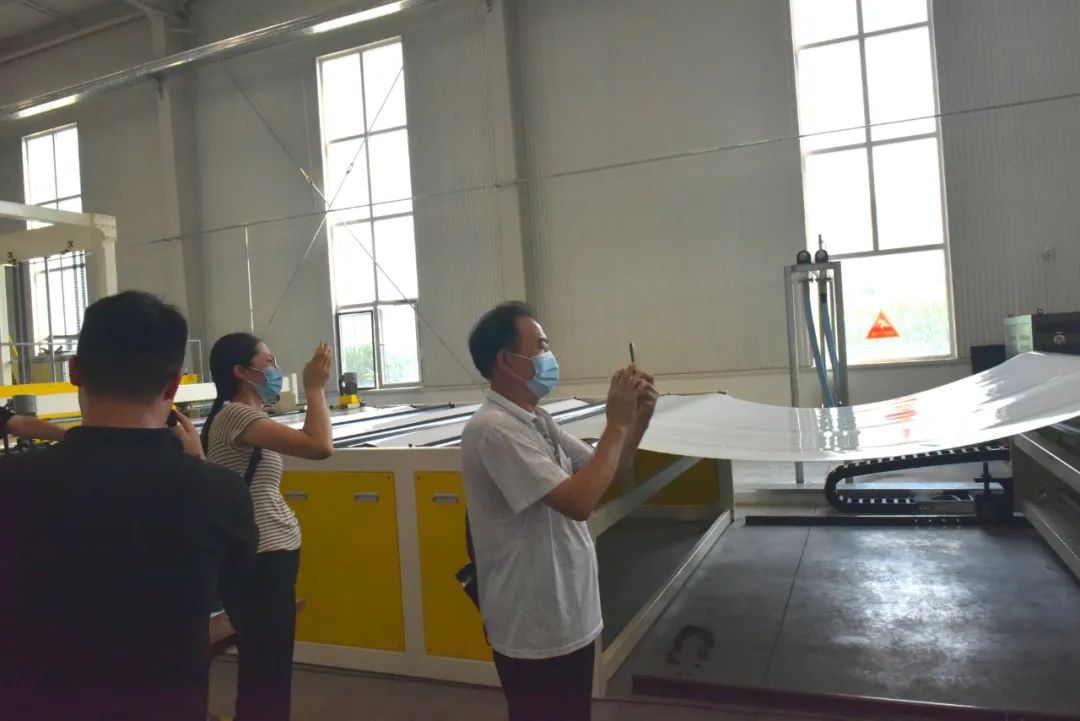 會前,專家領(lǐng)導(dǎo)們一行參觀了公司的展廳和生產(chǎn)車間,并對企業(yè)發(fā)展歷程、聚丙烯長絲土工布、TPO復(fù)合防水卷材的材料屬性、材料尺寸、抗拉強度、撕裂強度、抗穿刺強度等物理、化學(xué)性能等維度進行了詳細了解,對晶創(chuàng)新材料的高效率生產(chǎn)和制造工藝水平,高品質(zhì)的質(zhì)量管理、全方位服務(wù)給予了較高肯定和贊許。