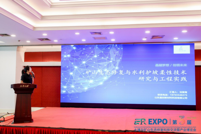 次日山東晶創(chuàng)新材料科技有限公司技術(shù)經(jīng)理劉青青在分論壇上深入解析了《礦山生態(tài)修復(fù)與水利護(hù)坡柔性技術(shù)研究與工程實(shí)踐》,重點(diǎn)展示了聚丙烯長(zhǎng)絲抗沖網(wǎng)墊等產(chǎn)品在生態(tài)修復(fù)中的技術(shù)優(yōu)勢(shì)。